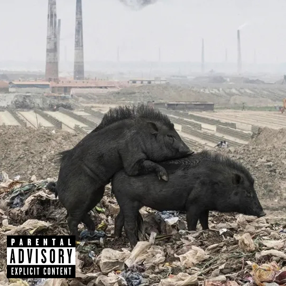 Si votre alter-ego de rappeur n’a pas réellement les épaules pour porter un projet à la DA visuelle minimaliste, vous vous rendrez rapidement compte que n’importe quelle photo de votre pellicule Iphone pourra faire l’affaire. Ajoutez-y un Parental Advisory (le web est rempli de tutoriels pour vous expliquer comment) et le tour est joué : vous êtes désormais un artiste imperceptible et imprévisible. Deux sangliers qui s’accouplent dans une décharge ? l’album prequel d’Haram, d’Armand Hammer. Un flocage douteux du AC Milan ? le prochain EP de LTA. Votre camion que vous louez chez Ada a été graffé dans la nuit ? L’ultime album d’Hugo TSR. Et tout ça, sans enregistrer le moindre RIB de graphiste dans votre plate-forme bancaire en ligne.