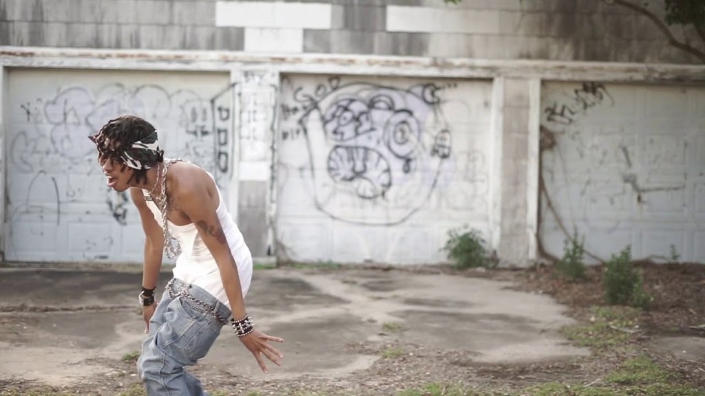 Il en va de même pour les clips, tous plus uniques les uns les autres. Teezo est très critique envers les clips qui se font aujourd’hui, qu’il trouve majoritairement génériques et interchangeables, et on en conviendra, c’est tout à fait vrai. Des pseudo-idées usées jusqu’à la moëlle, des récurrences fatigantes, des clichés désuets mais pourtant toujours autant mis en avant, la liste de reproches est longue. Lorsqu’on est autant à cheval sur les visuels que l’est Teezo, on partage forcément son opinion. Et ce n’est pour autant pas pour faire preuve d’élitisme à ce niveau, il y a des clips qui fonctionnent très bien en utilisant ces clichés habituels. Pour un clip de trap bien crasseuse, une ambiance à la Loaded de Thug et Peewee fonctionne à merveille, pas besoin d’un concept particulièrement alambiqué. Mais pour ce que Teezo a en tête, il faut autre chose. Quoiqu’il en soit, il y a pas mal de choses à y décortiquer, dans ces clips. Tout d’abord, la principale récurrence, c’est la scénographie: le background est toujours le même, cette devanture de garage taggée, qui revient à chaque fois. Il est impossible de trouver l’origine et la signification de cet élément, mais il a probablement un symbolisme particulier pour Teezo, qui pourrait par exemple être là où il garait sa vieille guimbarde lorsqu’il dormait chez un de ses potes quand il allait en soirée se graisser le toboggan. Le mystère reste entier comme la vertu d’un chevalier. Autres récurrences, les costumes. D’un clip à l’autre Teezo arbore certains éléments vestimentaires chers à son image, comme ces fameux clous fixés à ses dreads, ses chaînes massives ou encore les bracelets cloutés. Il a plusieurs fits différentes, comme par exemple le fameux combo jeans – wife odd beater. Oui car, Teezo renie l’expression « wife beater » pour des raisons suffisamment explicites. Et « odd beater » sonne vraiment classe, alors que l’autre sonne juste violence conjugale. On retrouve également à plusieurs reprises des références au football américain, que ce soit les costumes de mascotte ou l’aménagement en bordure de terrain de foot de la devanture du garage dans Bad Enough. Enfin, en termes de filmage, on remarque que le positionnement de Teezo est souvent le même, à savoir décalé sur la gauche de l’écran, avec le regard perdu dans cette direction, comme s’il… ben en fait j’ai vraiment aucune idée de la signification que ça pourrait avoir. Souhaiterait-il décentrer le téléspectateur, comme pour lui faire comprendre que l’on est pas censé avoir le privilège de le voir? Voudrait-il nous faire passer pour des voyeurs? Qui regarde-t-il si ce n’est nous? Qu’est-ce que cette ou ces personnes a ou ont-elles de plus que nous? Tant de questions sans réponses pour le moment mais qui, assurément, dans le grand schéma des choses, finiront par prendre tout leur sens, une fois que Teezo aura parachevé son oeuvre. Et au pire, pour paraphraser la C.H.È.V.R.E., « ils comprendront dans 100 ans ».
