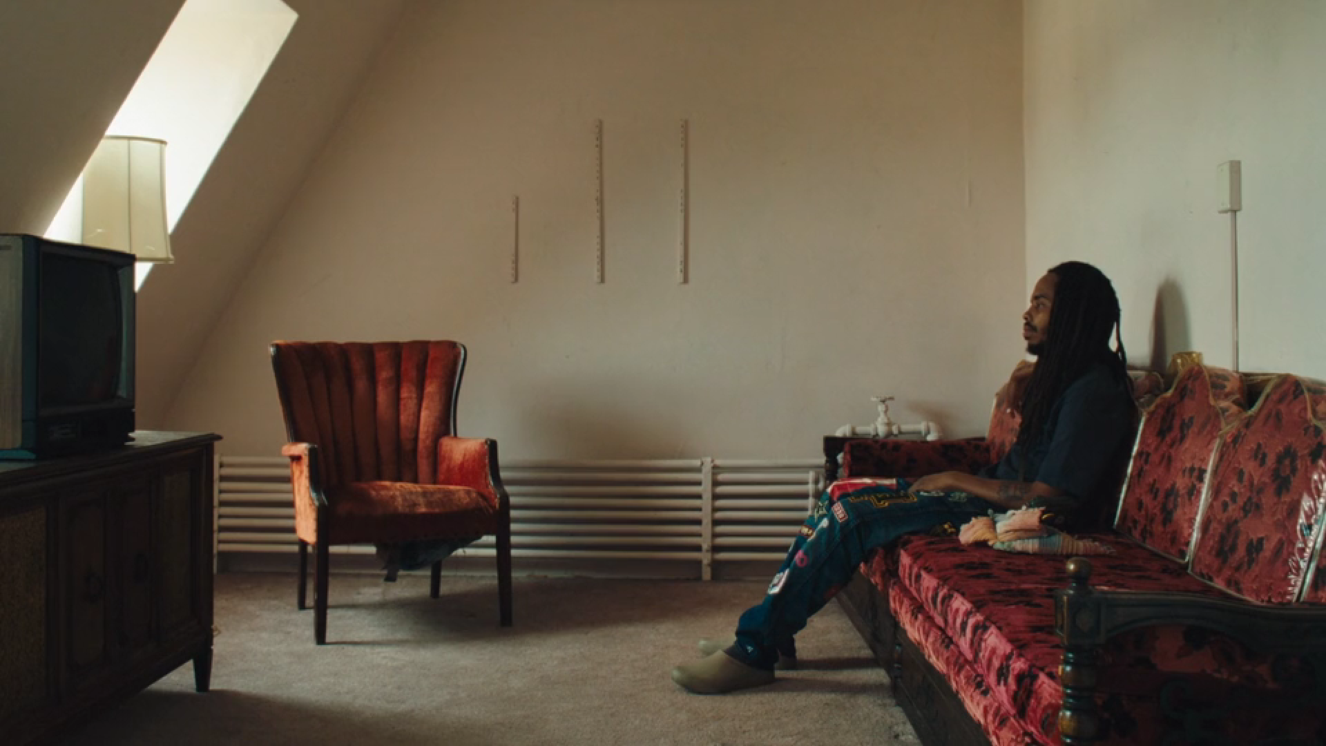 Au service de « Genny », c’est l’ourson de Murakami – que l’on connait mieux comme étant l’ancienne mascotte du sulfureux Ye – ou bien l’énorme doudou Kirby qui peuple l’appartement de Zoink. L’un des éléments remarquables que l’on retrouve dans le reste de sa clipographie, c’est une insistance, une obsession pour les bancs et les chiens. On les retrouve dans d’autres clips, celui de Navy blue pour « Timberwolves » par exemple. Comme à son habitude, la vidéo tient en bien peu de chose : Sage Elsesser balade sobrement son pitbull terrier dans une succession de photographies en couleurs rétros. L’occasion d’en griller une, de parcourir un parc, et vous l’aurez compris, d’immortaliser un banc. Un autre aspect prépondérant de Ryosuke, ce sont ses manies de styliste qui se découvrent par des choix de cadrages étranges et elliptiques. Dans « Vin Skully », Earl gravite dans un bâtiment à l’aura désuète. Vieux mobiliers, vieux moniteurs, pales de ventilateur sorties d’une Amérique marinant encore dans le jus du passé, Tanzawa filme Earl sur un tapis de course, fixé sur une vitesse lente. À chaque fois, le cadre est conçu pour oblitérer cet objet sportif ; effet qui nous communique l’impression que le rappeur marche désespérément – quoiqu’avec une indolence et un abandon serein – dans le vide de ces appartements dépouillés.